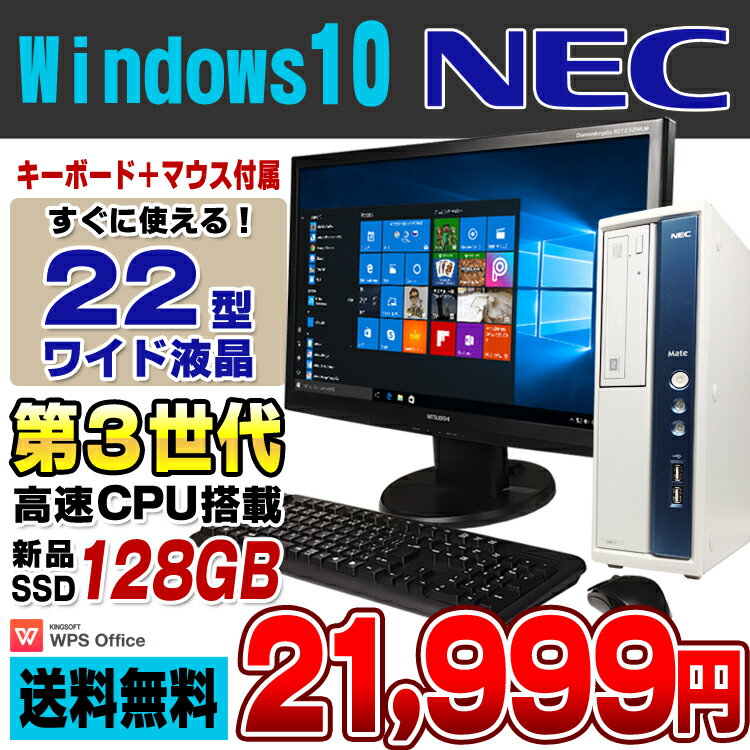 【3年保証】【お気楽返品OK】【送料無料】中古デスクトップパソコン 省スペースデスクトップ NEC [Microsoft Office Personal 2013付属]MATE MK34L/B-G HDD250GB メモリ4GB DVD-ROM Core i3 Windows 10 Pro 有線LAN 中古パソコン