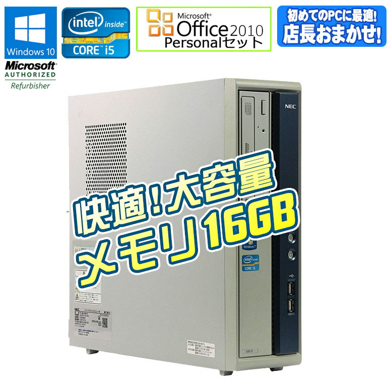 【3年保証】【お気楽返品OK】【送料無料】中古デスクトップパソコン 省スペースデスクトップ NEC [Microsoft Office Personal 2019付属]MATE MK32M/B-T HDD500GB メモリ4GB DVD-ROM Core i5 Windows 10 Pro 有線LAN 中古パソコン