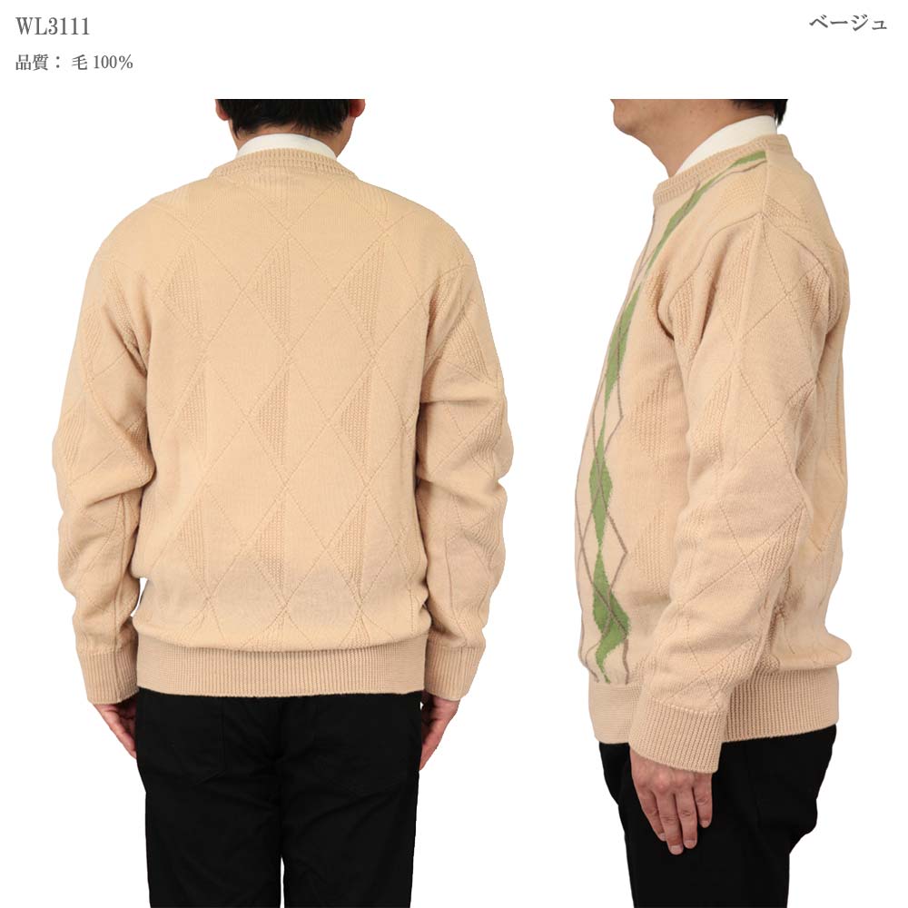 ) 商品詳細 0◆クーポンで20%OFF◆ 日本製 ウール100% 7ゲージ アーガイル クルーネックセーター 紳士/メンズ(3111)ベージュ チャコール ワイン