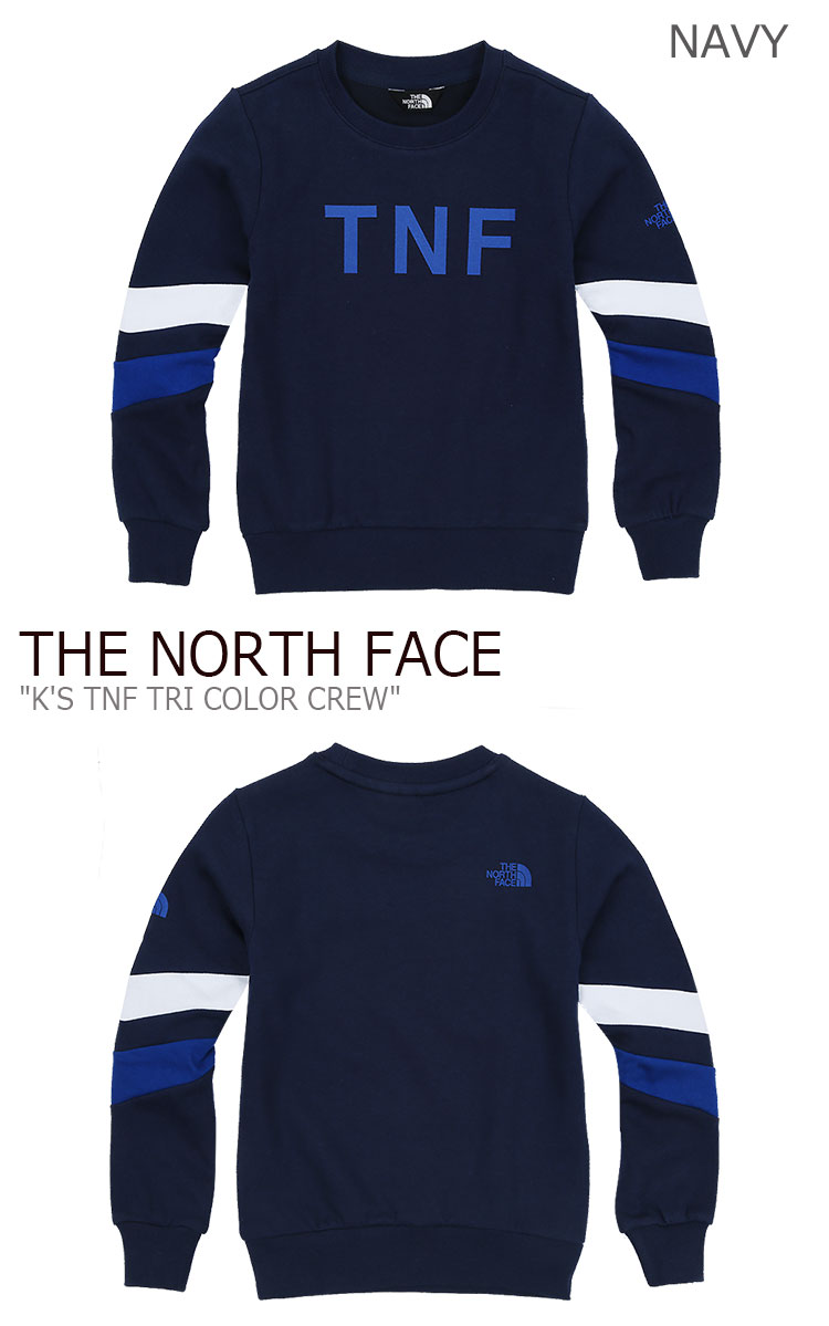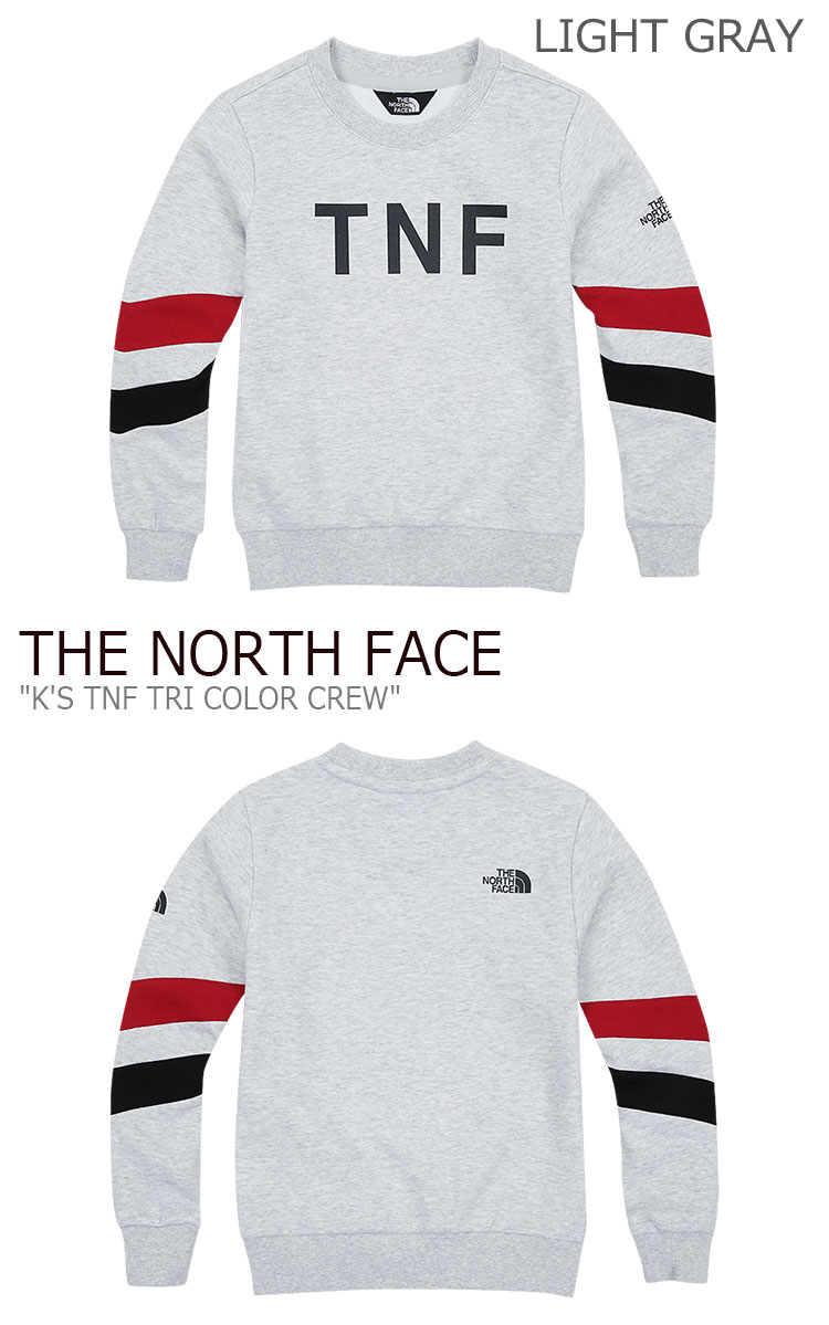 商品紹介 ノースフェイス トレーナー THE NORTH FACE キッズ K'S TNF TRI COLOR CREW TNF トリカラー クルー スウェット GRAY グレー NAVY ネイビー NKT5MI04 ウェア 大人気ノースフェイスより、K'S TNF TRI COLOR CREWの登場。